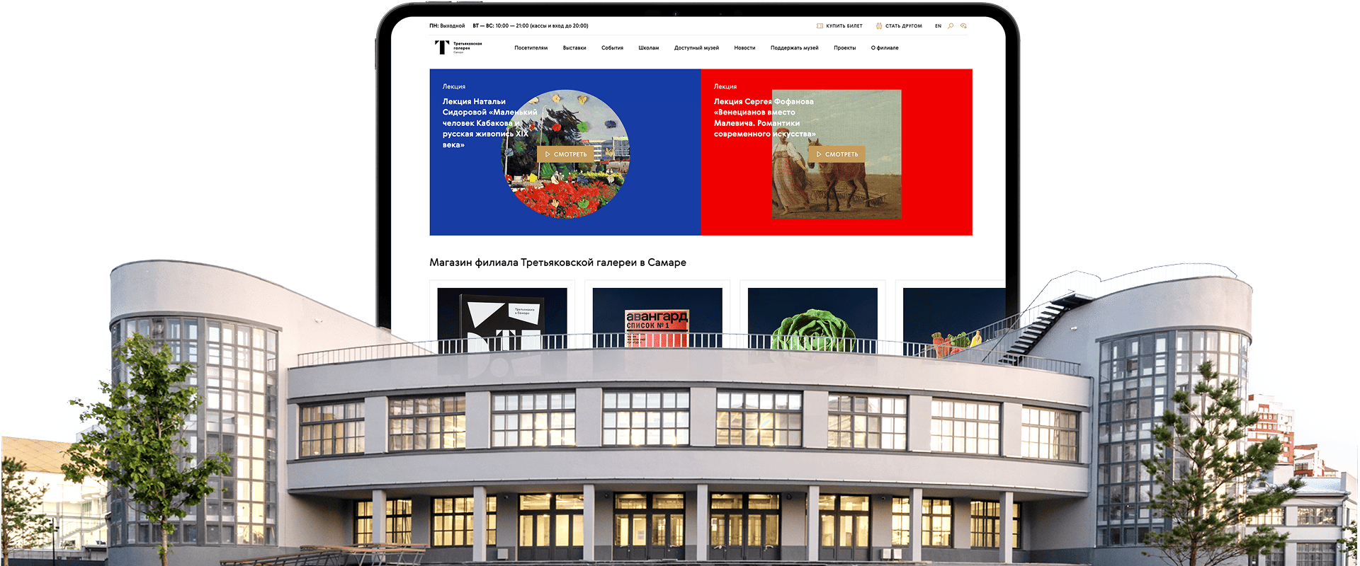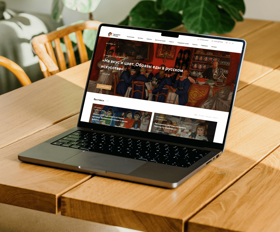 Перед нами стояла амбициозная задача — создать digital-пространство, достойное имени Третьяковки и отражающее концепцию филиала: диалог классики и современности сквозь призму культуры ХХ века. Сайт должен был стать не просто информационной площадкой, а полноценной онлайн-платформой, объединяющей все направления деятельности музея: от выставочных проектов до образовательных программ и арт-резиденции.
